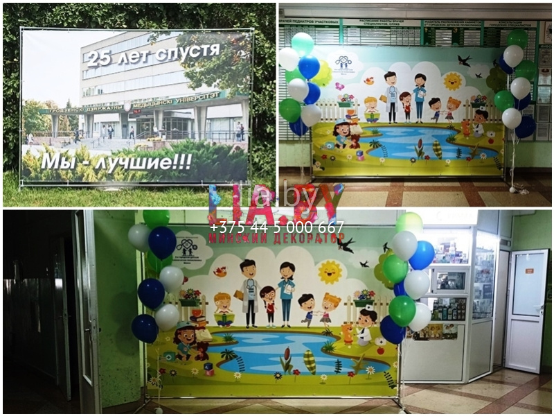 | Классическая | Баннер + декор (шары, мольберт или тумбы-цилиндры) | 2-5 дн. | от 650 BYN |